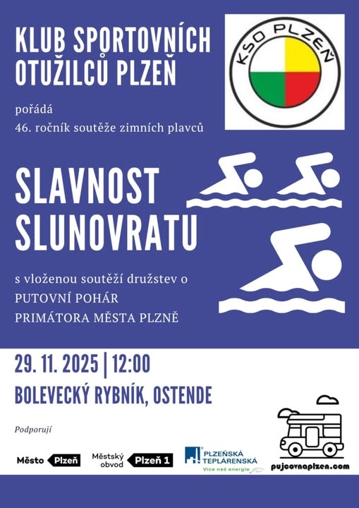 Srdečně vás zveme na naše závody v zimním plavání, které se uskuteční v sobotu 29. listopadu v Plzni na Boleváku a které jsou součástí seriálu Českého poháru v zimním plavání.